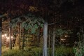 - Мангал под навесом с отделением для казана, шампуры, решётка;